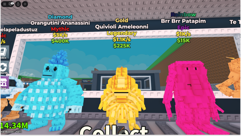 | Gold | Spawns randomly on brainrots | x1.25 |